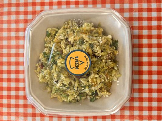 Perfect for a grab and go lunch, Salads change regularly. Todays Salad: Orzo, roast pumpkin, red onion, toasted sunflower seeds, rocket pesto, feta. See below for protein add ons.